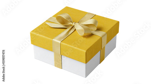 © Hasina, Obraz premium Yellow and white minimalist gift box mockup isolated on transparent background