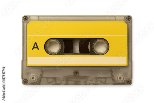 Fototapeta premium Yellow audio cassette tape vintage music media