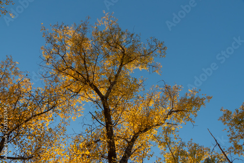 © APHOTOSTUDIO, Fototapeta premium Yellow autumn autumn foliage of trees against the blue sky.