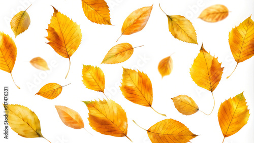 Fototapeta premium Yellow autumn leaves, falling flying, isolated on white background, fall,...