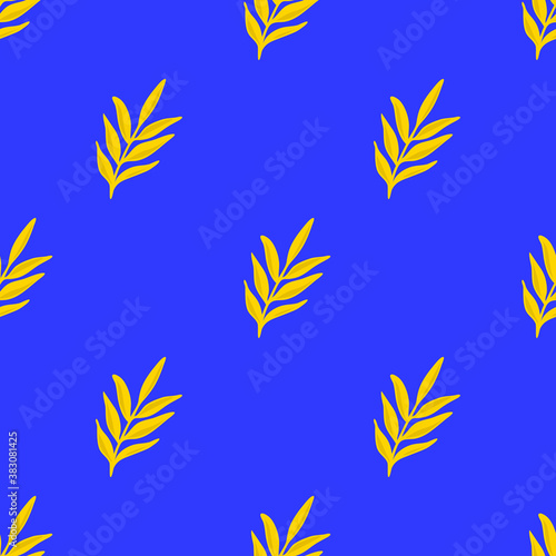 Fototapeta premium Yellow autumn leaves on a blue background. Seamless pattern for fabric,...