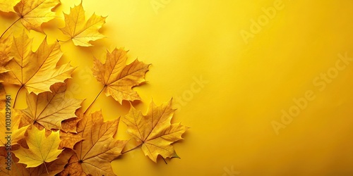 © anu, Fototapeta premium Yellow autumn leaves on background