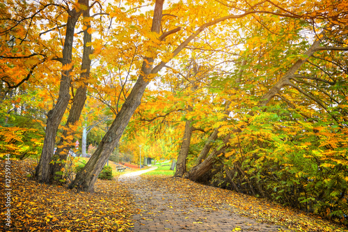 Naklejka premium Yellow autumn trees in park