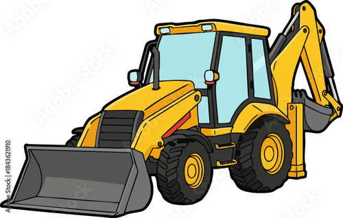 © Rizzz, Naklejka premium Yellow backhoe loader vehicle isolated cartoon illustration.