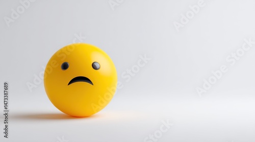 Fototapeta premium Yellow ball with a sad face expression on a white background.