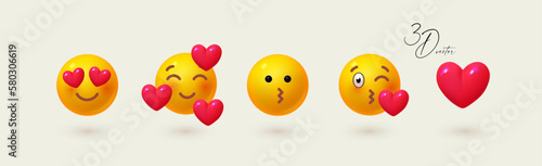 © feaspb, Fototapeta premium Yellow ball with face set. Emotion expression collection. Love, heart and romantic.