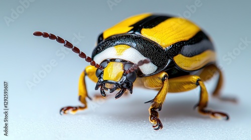 © MAKASIHMAS SIDNEY, Fototapeta premium Yellow beetle macro shot, studio background, insect detail, nature photography (1)