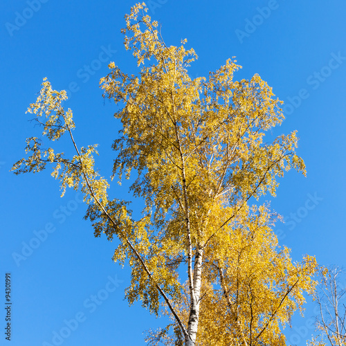© vvoe, Fototapeta premium yellow birch tree on blue sky background in autumn