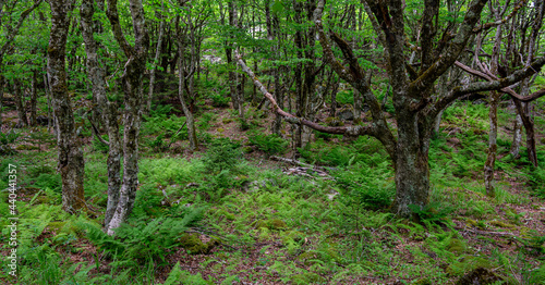 © Gerry, Obraz premium Yellow birch trees (Betula alleghaniensis) growing among ferns in forest in Grayson Highlands State Park in southwestern Virginia in mid-June.