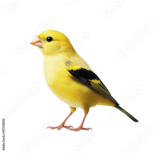 © Yadi, Obraz premium Yellow Bird with Black Accents on White Background