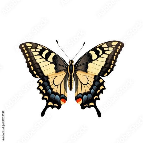 © vivekFx, Fototapeta premium Yellow, black blue butterfly in flight