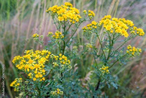© Ruud Morijn, Obraz premium Yellow blooming common ragwort from close