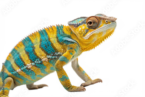 © Sweety, Obraz premium Yellow blue lizard Panther chameleon isolated on PNG AL