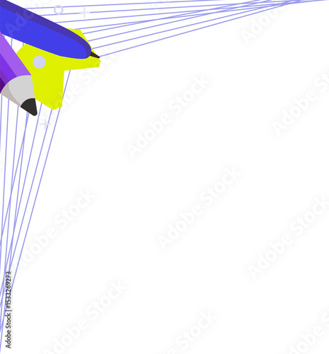 © vectorfusionart, Obraz premium Yellow blue purple stylized pencils are radiating guide lines on transparent background, copy space