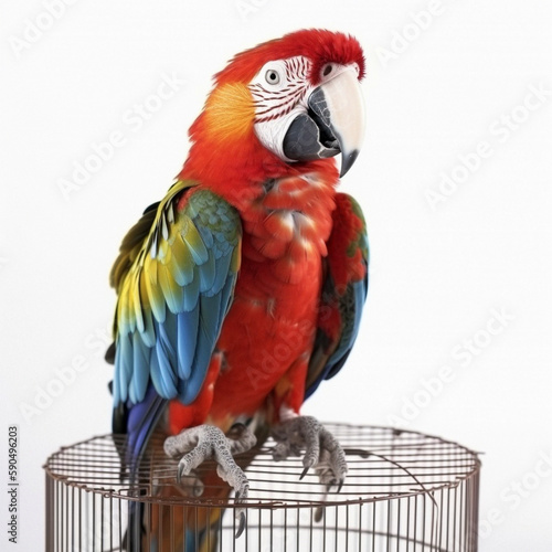 Fototapeta premium Yellow-breasted Macaw (Ara ararauna), in front of white background, AI-generated