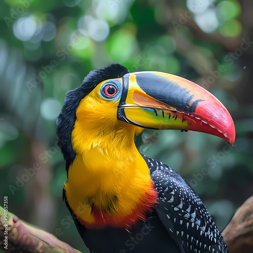 © ak159715, Naklejka premium Yellow-breasted toucan,Luxurious yellow-breasted toucan with an open tail