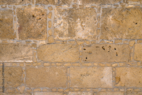 Fototapeta premium Yellow brick wall, copy space, brick texture, background