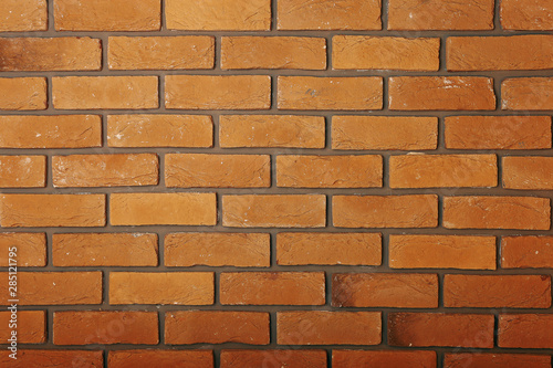 © Plutmaverick, Obraz premium Yellow brick wall. Texture, wallpaper background.