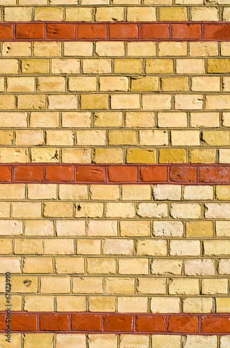Obraz premium Yellow brickwall with red stripes