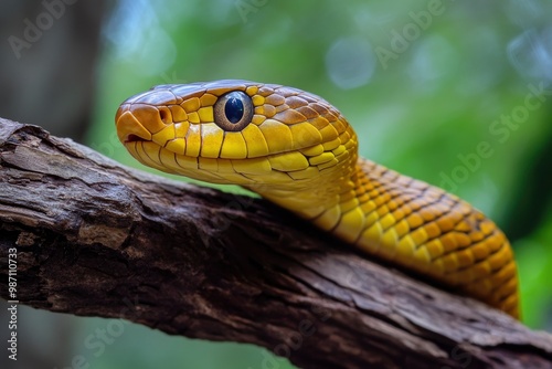 © Dzikrul Husnani, Fototapeta premium yellow brown snake on a branch , ai