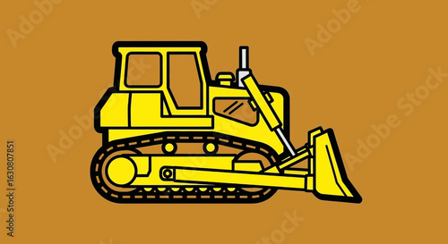 © Anom S., Naklejka premium Yellow Bulldozer Heavy Equipment with Blade on Brown Isolated Background