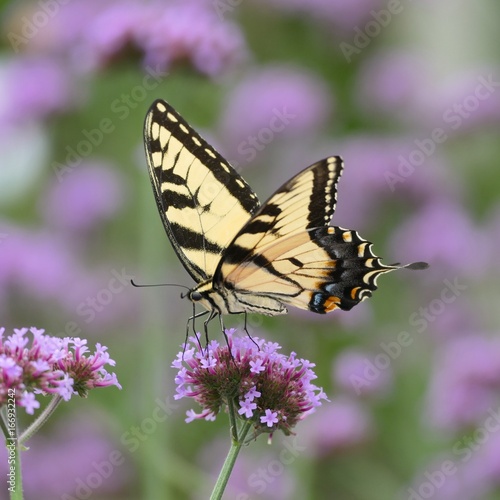 © Corrie, Naklejka premium Yellow butterfly on purple flower