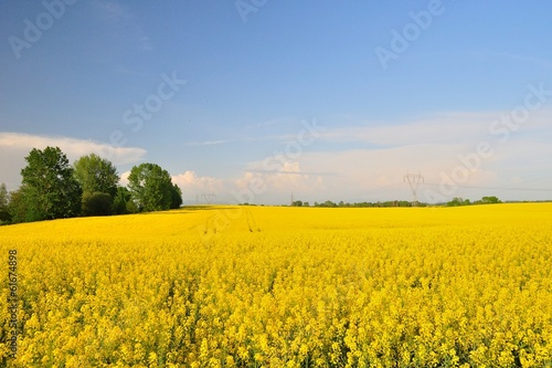 Obraz premium Yellow canola (Brassica napus L.) field with blue sky