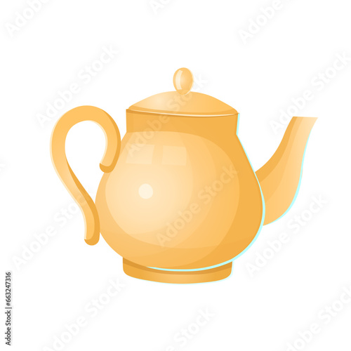 © NADEZHDA, Obraz premium Yellow ceramic teapot. Vector cartoon illustration.