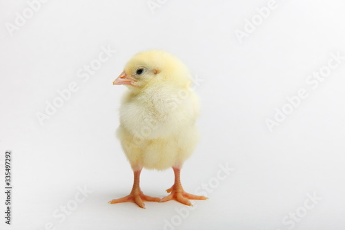 © Petr Smagin, Fototapeta premium yellow chick on a white background close up with copy space