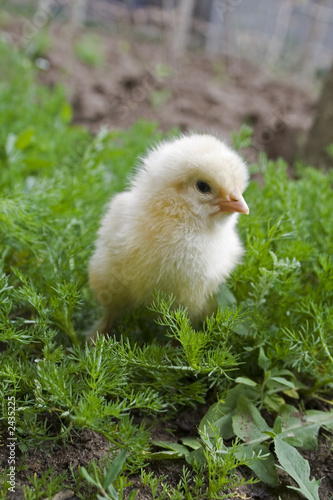 © Tudor Stanica, Obraz premium yellow chick on green grass close-up