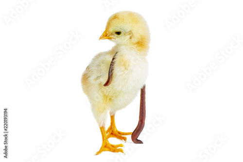 © Roman Ivaschenko, Obraz premium Yellow chicken and earthworm