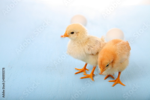 Fototapeta premium Yellow chicken and eggs
