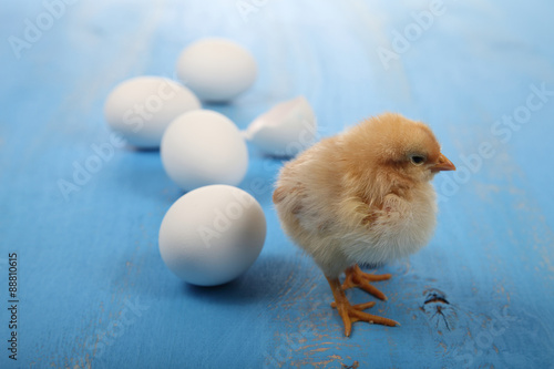 Fototapeta premium Yellow chicken and eggs