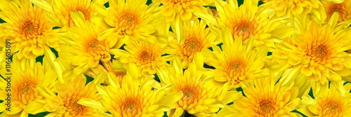 Fototapeta premium Yellow chrysanthemums top view flower background