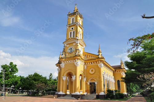 © ZhouEka, Obraz premium Yellow church in Ayutthaya, Thailand