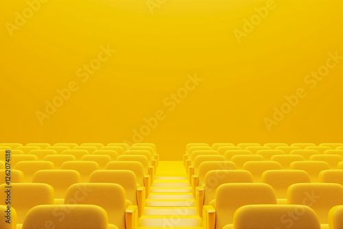 © Dima, Fototapeta premium Yellow cinema auditorium with yellow seats on orange background. 3d render. Generative AI