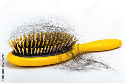 © Ancha, Obraz premium Yellow comb full of dark hair strands