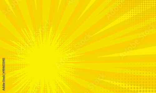 © Asta Desain, Obraz premium Yellow comic background with sunburst