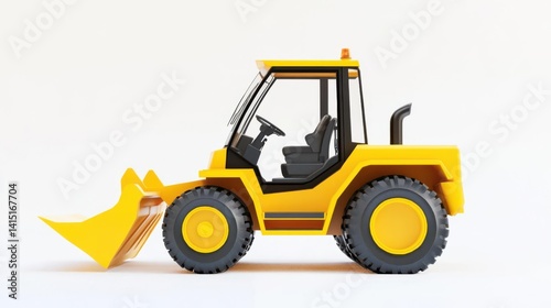 Fototapeta premium Yellow construction vehicle with a front loader on a plain background, showcasing its design