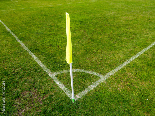© Andrey, Fototapeta premium Yellow corner flag on soccer pitch