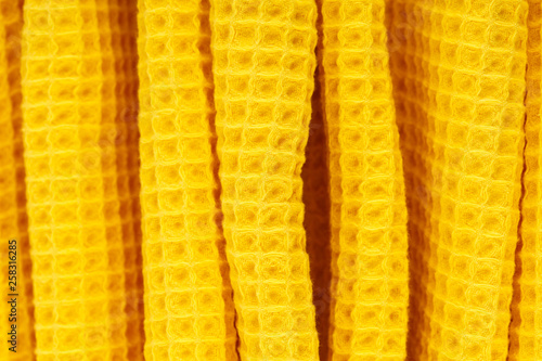 Fototapeta premium Yellow corrugated cotton textile - close up of fabric texture. Cotton Fabric...