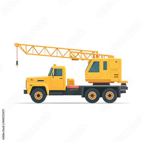 © Illahstd, Fototapeta premium Yellow Crane Truck with Lattice Boom and Hook Side View Heavy Machinery
