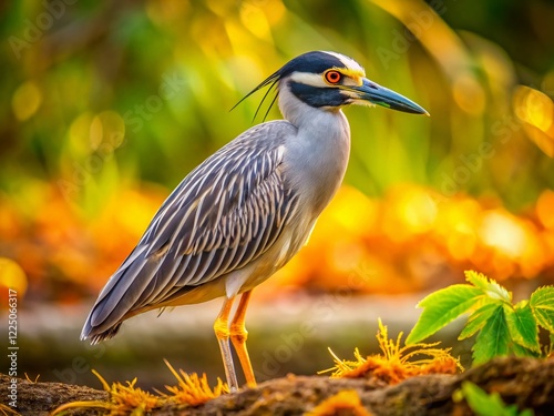 © Four888, Obraz premium Yellow-crowned Night Heron Ground Perch - Vertical Wildlife Photo