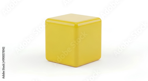 © Shelly, Fototapeta premium Yellow Cube Object on White Background
