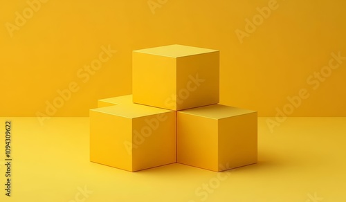 © hens, Fototapeta premium Yellow 3D Cube Display Minimalist Geometric Shape Podium Stage Platform Abstract Background