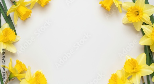 © Artiscia, Obraz premium Yellow daffodils on white background forming frame