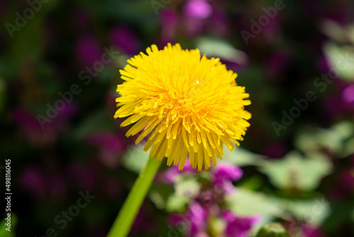 © TVIT, Naklejka premium yellow dandelion flower bloomed in the garden