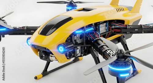 Fototapeta premium Yellow Drone with Camera and Blue Lights