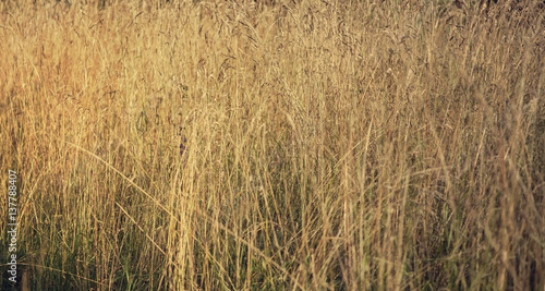 © Lyudmila, Fototapeta premium Yellow dry grass in the field. Grass summer. Нerbal texture.