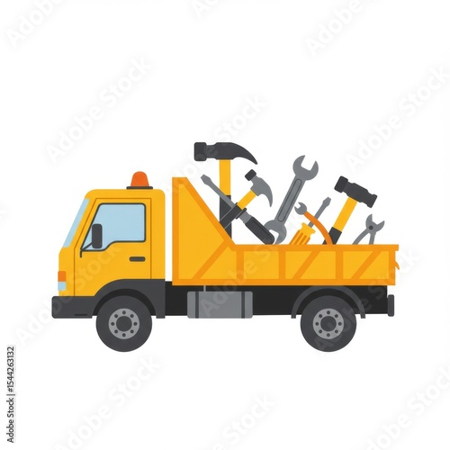 Naklejka premium Yellow Dump Truck Filled with Tools